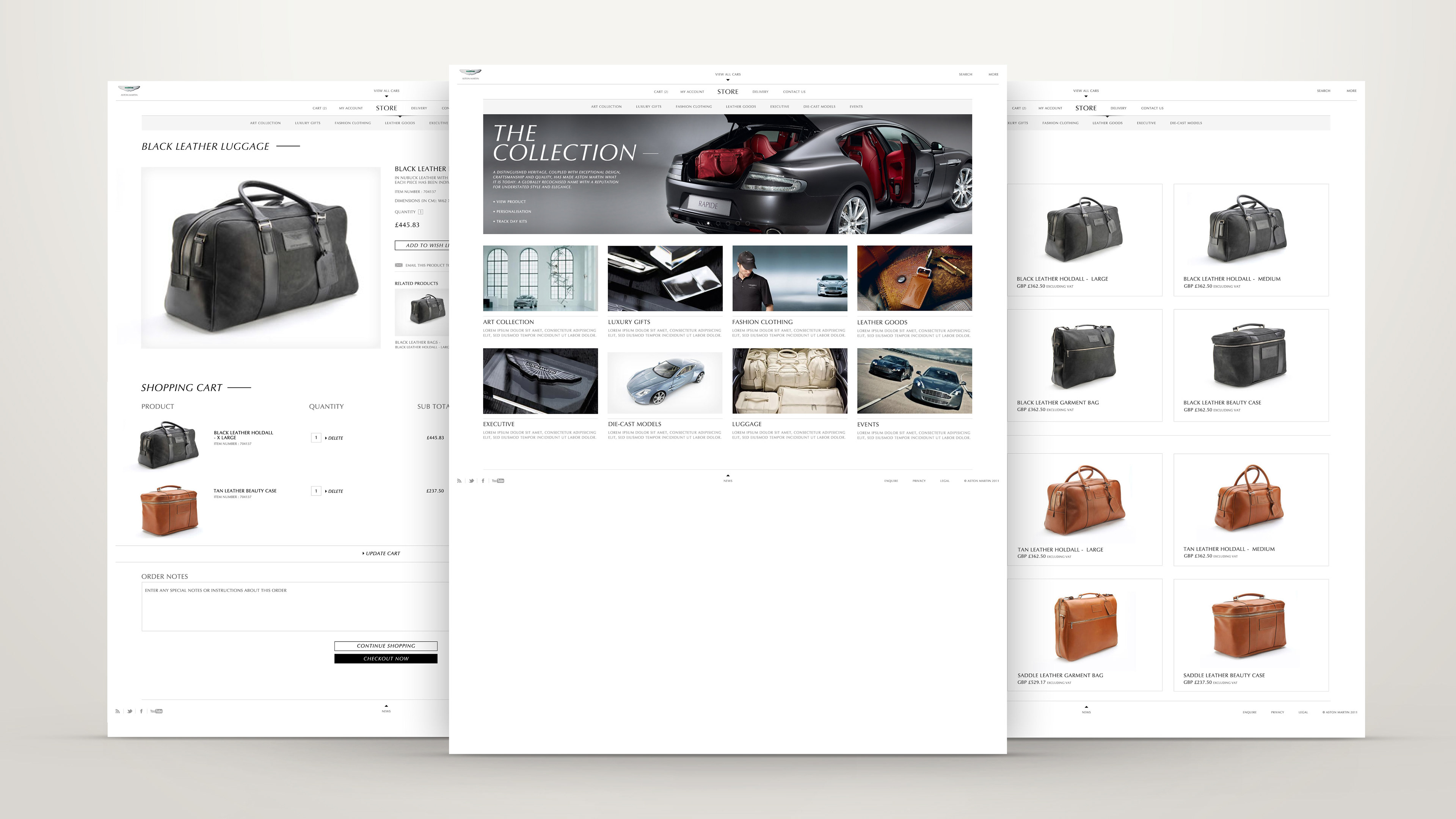 R/GA's Aston Martin website 'Store' and 'Checkout' page designs, navigation elements